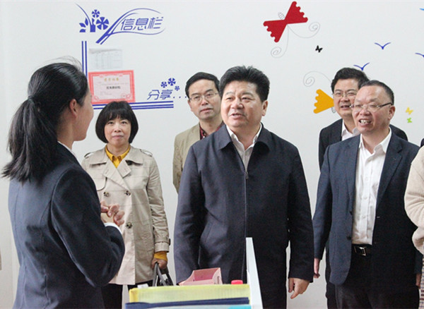 启动仪式结束后,韩平副厅长一行对明珠学校进行实地走访调研。(办公室、明珠学校)