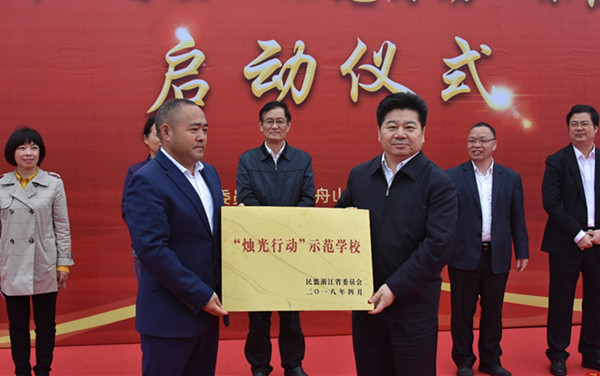 4月4日下午,“烛光行动”启动仪式在我市明珠学校举行。民盟省委会副主委、省教育厅副厅长韩平,舟山市政协副主席、民盟舟山市委会主委谢永和,舟山市教育局局长祝幸安,舟山市委统战部副部长陈宏成,民盟浙江省委会社会服务部副部长郑霞意等出席启动仪式。韩平向市明珠学校授“烛光行动示范学校”铜牌。杭州天杭教育集团与明珠学校签订结对互助协议书。仪式由民盟舟山市委会专职副主委任珊红主持。