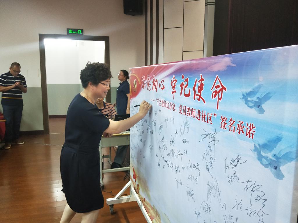 助力奉献,主动服务,带头承诺延伸七一正能量。表彰大会后,全体党员教师进行“千名教师访万家、党员教师进社区”活动签名承诺,每个党员教师郑重承诺,会自觉发扬优良师德师风,延伸七一红色正能量。该活动旨在延伸拓展党员教师服务社会的实践平台,强调突出党员教师身份,发挥先锋带头作用,主动深入基层、服务社区回,通过志愿服务传递正能量,以党员教师为引领,带动普通教师为社区群众授课解惑,为十九大精神宣传增添助力,重塑教师队伍良好形象。(嵊泗县教育局)