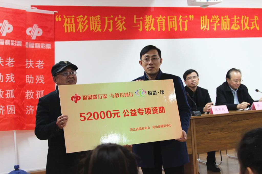 为全面落实党的十九大“努力让每个孩子都能享有公平而有质量的教育”的相关精神,更好的帮助我市新居民子女顺利就学、健康成长,展现新区开放胸怀,促进教育公平。12月29日下午,2017年舟山市新居民专项助学励志活动资助仪式在市明珠学校举行。市教育局副局长毕云、市民政局副局长陈军民、市学生资助及福彩中心相关负责人出席资助仪式。