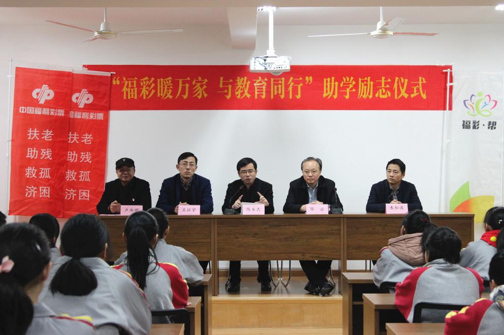 市福彩中心王征宇主任为明珠学校学生送上5.2万元资助金